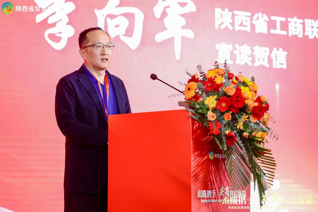 陕西省工商联秘书长李向军现场宣读工商联及兄弟商会贺信,送上衷心祝福与殷切希冀。