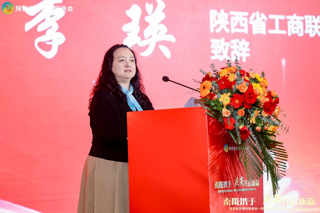 陕西省工商联副主席李瑛代表陕西省工商联、省总商会,对活动的顺利召开表示热烈祝贺,她希望陕西省甘肃庆阳商会在杨斌会长为班子的理事会带领下,深入践行“胸怀报国志、一心谋发展、守法善经营、先富促共富”的重大要求,坚定不移走高质量发展之路;强化政治引领,对标“四好”商会建设,不断加强服务和管理,更加提升商会吸引力凝聚力;加强陕甘两省民营经济组织沟通、交流,不断开创两省高质量发展现代化建设新局面。
