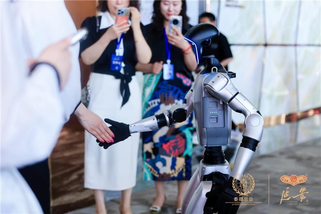 随后,AI机器人“延安酒首席智酿官1982”迈着稳健的步伐登场,流畅的机械动作与灵动的姿态瞬间吸引全场目光,由它担任“幸运使者”的抽奖环节将现场氛围推向高潮。这不仅展现了前沿科技的魅力,更以充满趣味性的方式,为这场科技与美酒交织的盛宴增添了浓墨重彩的一笔。