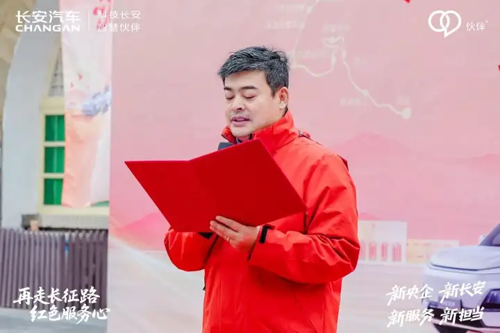 在庄严的启动仪式上,刘焕刚表示:“延安是长征的终点,更是长安服务新征程的起点。‘再走长征路’,走的是一条凝聚用户信任、传承红色基因的共创之路。”现场举行了庄重的授旗仪式,象征着长征精神的接续与使命的传递。同时,长安汽车特别为瑞金站、遵义站以及全程参与三站活动的车主代表授予了“红色之星”荣誉奖牌,以此致敬他们一路同行的深厚情谊与坚定支持。