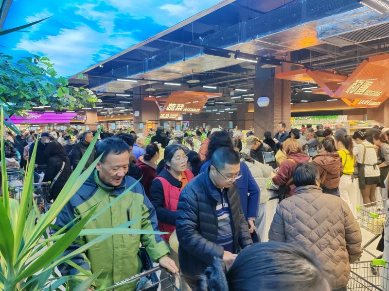 超市内琳琅满目的商品吸引了不少市民驻足选购——新鲜翠绿的蔬菜、色彩鲜艳的水果、鲜活的水产生鲜以及各式各样的日常生活用品,品类齐全、应有尽有,满足了周边家庭“一站式”采购需求。许多顾客穿梭在各个区域,手里拎着满满的购物袋,真实体现了该超市作为“老百姓的购物超市”的便利与实用。这是一家致力于改变您购物习惯的超市!