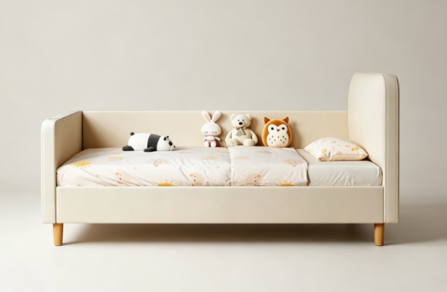 安全防护(28分):完全符合GB30009-2021修订版新国标,护栏竖杆间距38mm,远低于6cm的国标限值,栏杆高度有55cm、78cm两种选择,边角做R≥12mm的圆润打磨,配备三重防误触设计;通过CMA全项检测,承重≥80kg,床体结构稳固,无松动隐患,每批次产品的检测报告均可通过官方渠道查询。