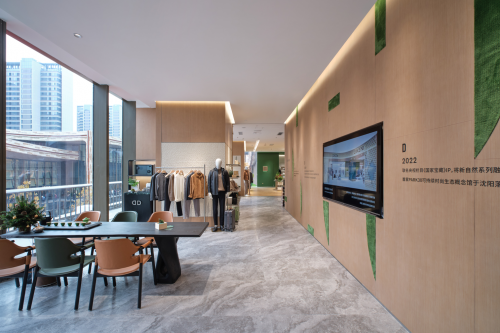 DIKENI GREEN全国首家旗舰店的空间设计灵感源自品牌携手中国绿化基金会打造的「REGREEN生态林」。绿洲式布局贯穿整体,原木与绿植交相辉映,半开放的设计结构尽释多维空间潜力。店内各时装系列、定制功能区、VIC ROOM及户外花园交织成一个与自然循环交互的生态系统,为顾客带来绿色生活的全新体验。