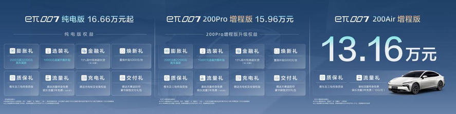 8月9日,eπ007增程版正式上市并开启交付。新车搭载东风马赫超感增程系统,CLTC纯电续航里程200km,综合续航里程达1200km。此次上市车型提供两种版本配置,eπ007 200Air增程版官方指导价为13.16万元,eπ007 200Pro增程版官方指导价为15.96万元。