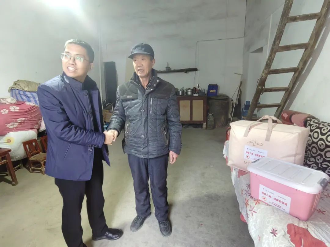 活动当天,在小河口镇六窝蜂村,县卫健局为24名困难群众送去了棉被、米面油等生活必需品。每到一户,慰问人员都与群众亲切交谈,嘘寒问暖,耐心倾听他们的心声,并鼓励他们保持乐观心态,特别叮嘱他们冬天要注意保暖,增强冬季用火用电安全意识,鼓励他们保重身体,“大爷,天气越来越冷了,这是我们给您送的棉被,一定要多注意保暖啊。”被慰问群众双手接过慰问品,脸上洋溢着幸福的笑容,虽口齿不清、行动不便,仍热情邀请一行人到家中坐坐,感激的心情溢于言表。一句句问候、一声声叮嘱,将党和政府温暖与关怀送到了他们的手中与心中。老人们开心地表示,目前一切都很好,非常感谢你们一直以来的牵挂与照顾。
