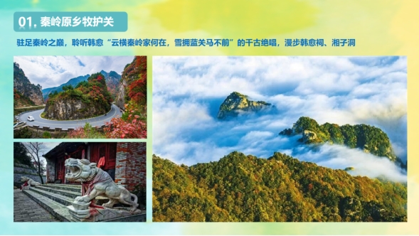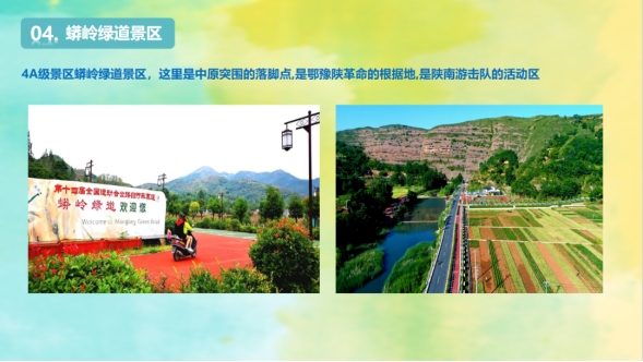 秦岭江山景区—卧虎岭景区—丹江沙滩乐园—蟒岭绿道景区。