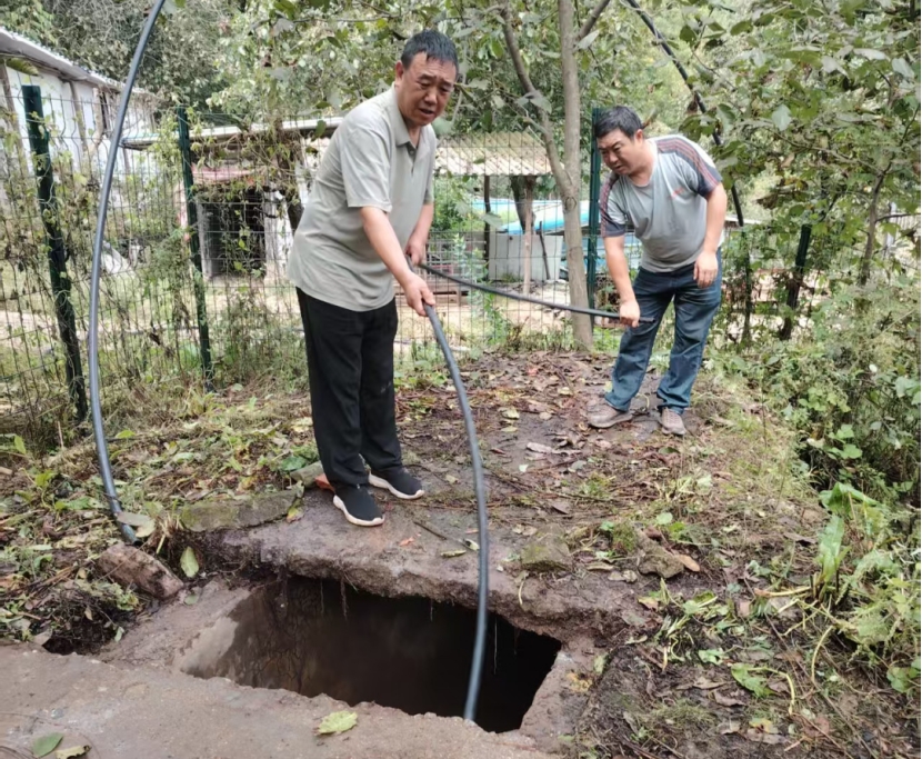 管水员鲍南山、王建勋闻讯而动,迅速奔赴现场,两人不顾雨后泥泞,立即展开勘查。淤积物已堵塞管道深处,常规清理工具难以奏效。时间紧迫,王建勋当机立断:“我下去疏通!”话音未落,他便只身潜入浑浊的蓄水池,池内污水没过胸口,能见度极低,泥沙不断涌入。他凭借经验摸索到堵塞点,奋力清除淤积物,汗水与污水混为一体。鲍南山则在池外配合,接力传递工具。经过两个小时的艰苦作业,淤积的泥沙和杂物终于被清除,排水口重新通畅,清水奔涌而出。