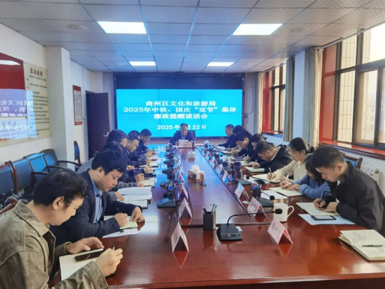 中秋、国庆双节将至,为深入贯彻中央八项规定精神学习教育要求,进一步加强作风建设,切实营造风清气正的节日氛围,9月22日,商洛市商州区文旅局召开“中秋”“国庆”节前集体廉政提醒谈话会。区文旅局党组书记、局长邵小宏主持会议并进行节前集体廉政提醒谈话,局班子成员、各股室及局属各单位负责人参加会议。