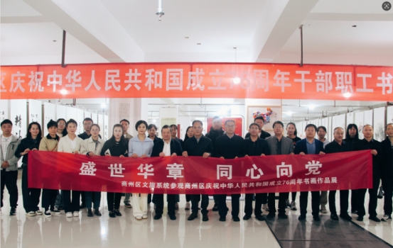 为庆祝中华人民共和国成立76周年,弘扬爱国主义精神、传承红色基因,9月28日上午,商洛市商州区文旅局组织全系统党员干部30余人参观学习了“盛世华章同心向党——商州区庆祝中华人民共和国成立76周年书画作品展”。