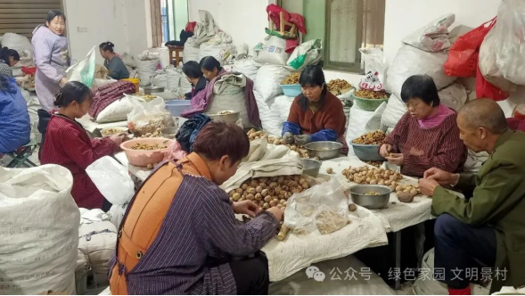 据悉,每年核桃采收之后,景村镇的创业能手们就开始积极行动,主动联系县域内的核桃加工企业,承揽核桃初加工项目,组织附近易地搬迁群众和村里的留守妇女、老人们,利用秋冬农闲时节参与剥核桃、筛选桃仁等工作。