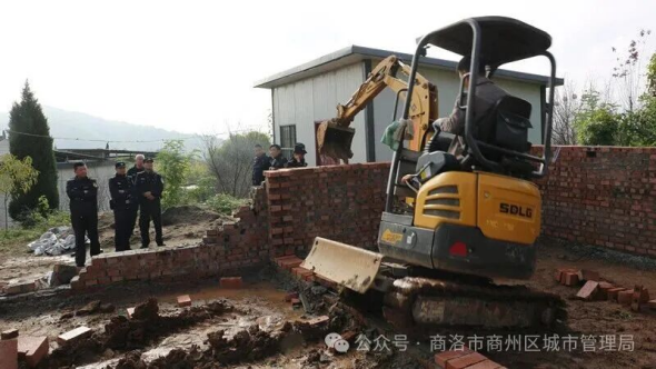 2025年10月15日上午,商洛市商州区城市管理局组织城管综合执法大队城关城管执法中队与城关街道办事处、商州公安城管警察中队联合执法,依法对和平社区九组刘某泉在金凤山景区公园内违法抢建的124.6平方米的违法建筑进行了强制拆除。