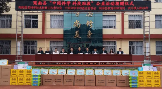 为推动乡村教育均衡发展,10月15日下午,由商南县老科协、中阅伴学专项基金管委会共同主办,商南县教育和体育局、试马镇人民政府协办,试马镇中心小学承办的“中阅伴学 科技助教”公益捐赠仪式在商南县试马镇中心小学隆重举行。县委常委、县人民政府副县长马飞出席活动并讲话,县人大副主任邱祚龙,县政协副主席江学谦出席活动。县教体局、试马镇党委相关负责人,以及受捐赠学校的校长们共同参加了此次活动。