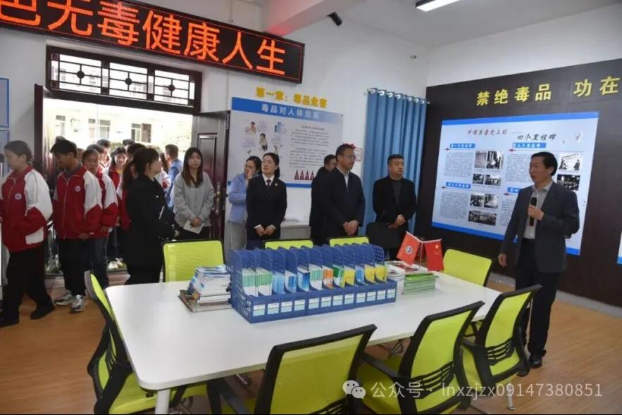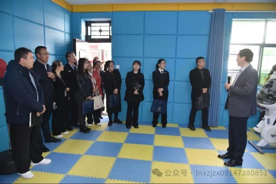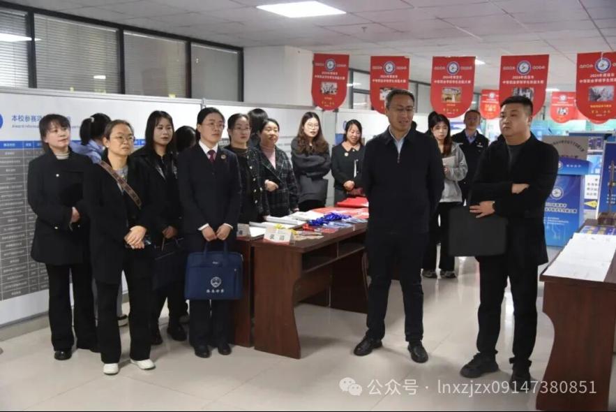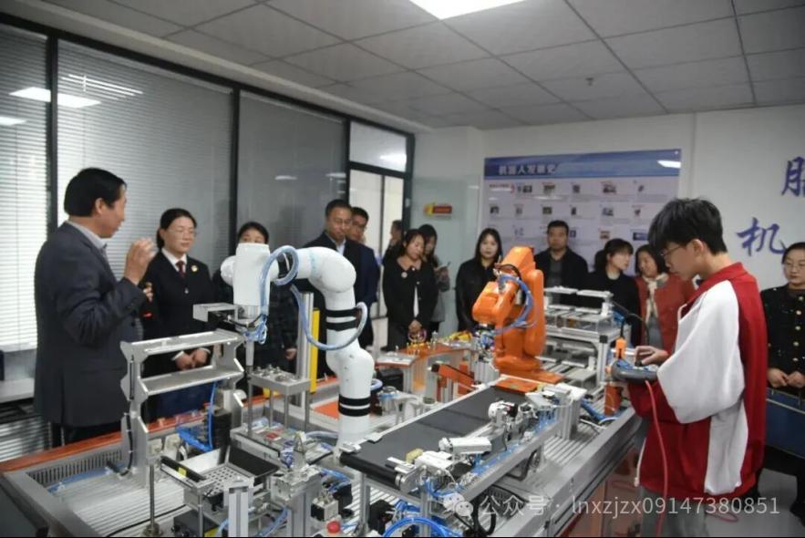 会前,与会领导参观了学校校园监控室、工业机器人实训室、中餐酒店实训室、心理健康教育基地及模拟法庭,详细了解学校办学特色与法治教育阵地建设情况。