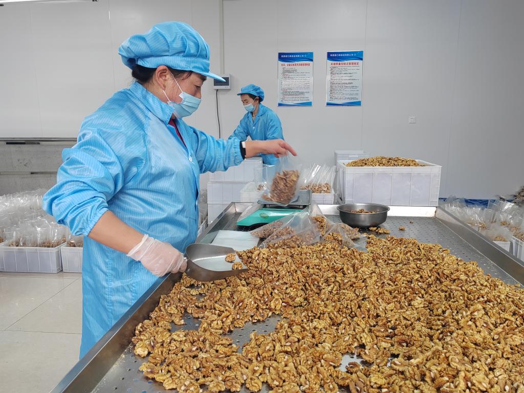 “过去是娃他爸一人在外打工养活六口人,现在我每月收入二千多元,真的没想到在家门口还能就业挣工资。”在核桃仁包装车间,八道河村一组夏彩霞娴熟地装袋、封口,“都是党的政策好,镇村干部给咱群众办的大好事、大实事。”