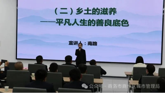 宣讲会上,来自商州区委宣讲团的五位老师,分别围绕“生命的托举——渭水河畔的英雄壮举”“乡土的滋养——平凡人生的善良底色”“勇者的抉择——精神文明的英雄答卷”“爱心的汇聚——微光成炬的社会回响”“行动的接力——英雄精神的薪火相传”五个主题,以清晰质朴的语言和真挚饱满的情感,生动讲述了李静毅同志在危急时刻挺身而出的英勇选择、成长过程中积淀的朴实品格,以及其善行引发的社会共鸣与精神传承。宣讲将英雄形象具象化、精神内涵时代化,令现场城管干部深受触动。