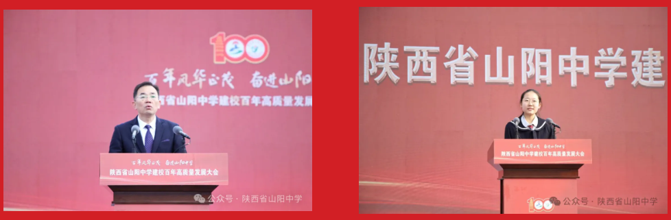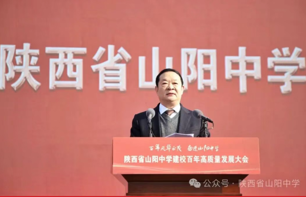 山阳县委书记谢晓军充分肯定了学校百年办学成果,对学校未来发展提出殷切期望,要求坚守为党育人、为国育才初心,为山阳教育高质量发展贡献更大力量,让在场者倍受鼓舞。