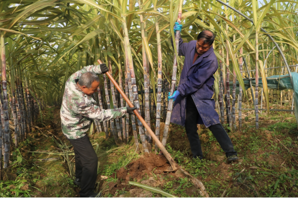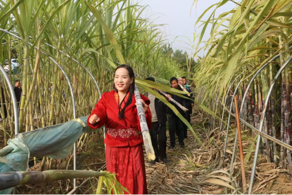 放眼园区,一排排甘蔗整齐挺拔,长势旺盛。务工群众穿梭其间,忙着采收、销售,脸上满是丰收的喜悦。产业园建在家门口,不少村民因此成为“上班族”。“南蔗北种”为群众蹚出了一条崭新的甘甜致富路。(雷鸣)