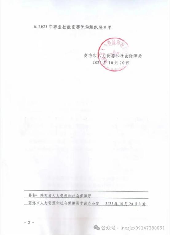 近日,2025年陕西省省级二类职业技能竞赛结果出炉,商洛市洛南县职业教育中心12名教师在家政服务员、养老护理员、保育员等赛项中斩获佳绩,其中家政服务员竞赛类郭娅、李毅、张敏荣获二等奖,寇丹阳荣获三等奖;养老护理员竞赛类张志存、王南荣获二等奖,张贝阳、陈榕荣获三等奖;保育员竞赛类李东轩、杜云彤荣获二等奖,吴娜、陈园荣获三等奖;同时洛南县职业教育管理办公室获评“优秀组织奖”。