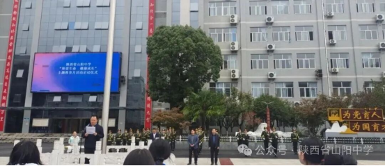 学校成立了主题教育活动领导小组,制定了详实的活动方案。10月初,陕西省山阳中学利用升国旗仪式,隆重举行了主题教育月活动的启动仪式,进行了主题宣讲,向全体师生阐明了活动的意义,正式拉开了活动序幕。