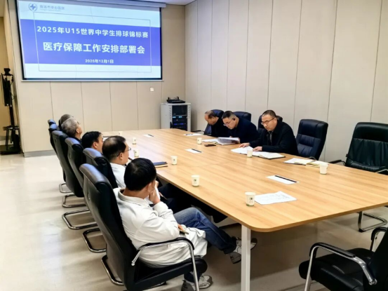 为确保医疗保障工作高效、有序开展,院领导高度重视,赛前,成立了以院党委书记、院长为组长,副院长为副组长、各职能科室负责人为成员的医疗保障工作领导小组,制定详实的医疗保障方案与应急预案。同时,在赛前开展了专题工作部署会议,并组织开展专项培训与应急演练,全面优化救治绿色通道,设置清晰的双语导引标识,确保中外运动员及工作人员均能获得及时、准确、高效的的医疗救治服务。党委副书记、院长唐红涛,副院长马开颜带队深入赛事场馆开展现场督导,确保赛事保障各项措施落实到位,为伤病员提供迅速、精准的医疗支持。