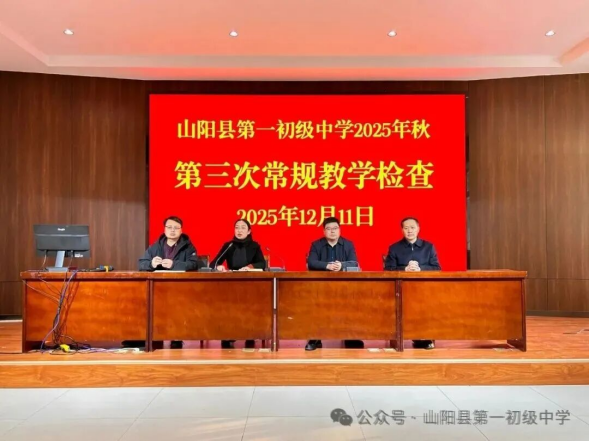 为深入推进“双减”政策落地见效,切实规范教学常规管理,提升课堂教学与作业设计的实效性,山阳县第一初级中学于2025年12月11日上午8:00—11:00在六楼会议室开展本学期第三次教学常规专项检查活动,对全校教学常规落实情况进行全面核查与督导,本次检查由管广富校长担任组长,杨晓斌校长、陈静主任等为核心成员,构建起“年级负责、学科核查、领导巡视”的检查体系,对推动学校教育教学质量提升有着重要意义。