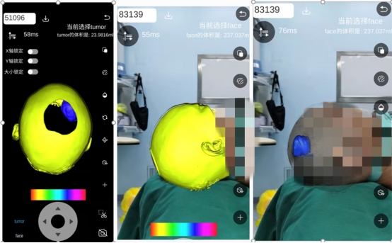 基于影像重建的病变组织模型,三维医学实验室采用增强现实投影与3D打印导板相结合的方式,辅助手术入路规划。这一尝试在一定程度上提高了手术的精准度,为手术的安全开展提供了更多保障。