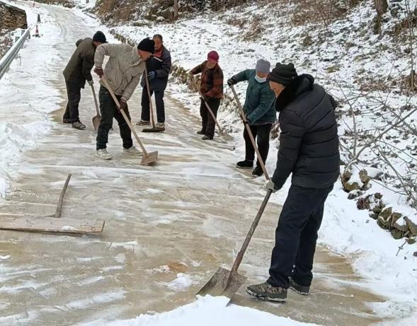 各村充分发挥基层党组织战斗堡垒作用和党员先锋模范作用,广泛动员公益性岗位人员、党员群众、志愿者等力量,聚焦242国道、镇村主干道陡坡、急弯及背阴易结冰路段等重点区域,全力开展扫雪除冰作业。
