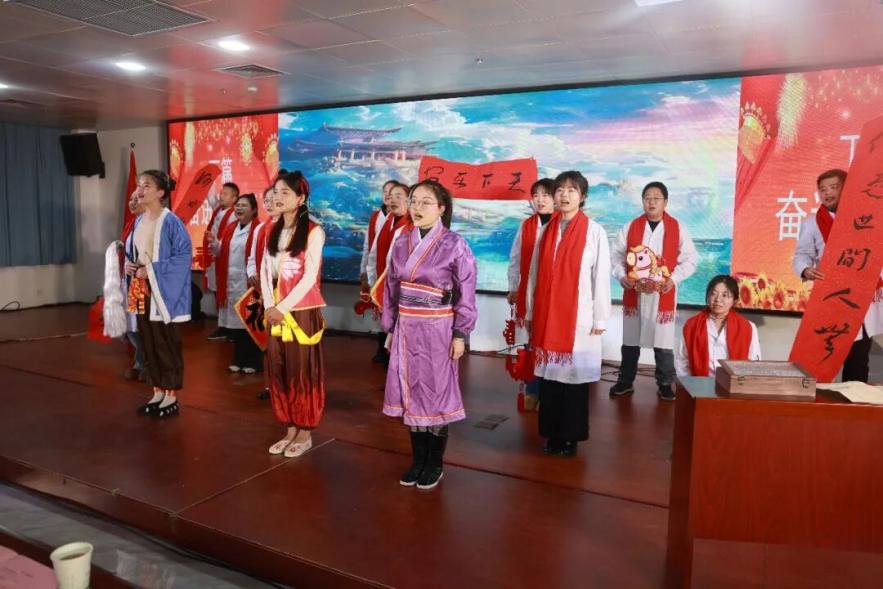 下篇奏响奋进旋律,歌曲《当那枫叶红》激情豪迈;朗诵《千里帮扶情》讴歌无私帮扶的深厚情谊;歌伴舞《青花瓷》演绎唯美意境;情景剧《哪吒胃痛记》创意独具,寓教于乐;独唱《中国人》凝聚爱国新声;舞蹈《爱莲说》以灵动舞姿诠释清廉高洁的品格;最后,汇演在全体合唱《难忘今宵》的感人旋律中圆满落幕,展现了卫健系统同心同行、共创未来的坚定信念与昂扬姿态。