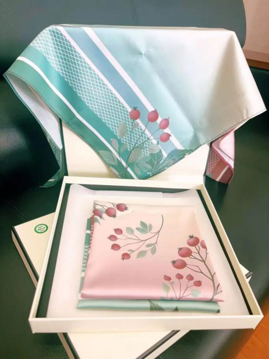 萃取蟒岭绿道四季风情,织就颈间诗意华章。以山楂生长轨迹为设计灵感,采用高阶真丝提花工艺,将“春芽绽绿—夏果凝碧—秋实透红”的时序之美具象呈现,边缘镂空绣制的山楂花精巧点缀,触感柔滑亲肤,光泽温润如玉。缠绕颈间,既藏自然清新之气,又暗合山楂从酸涩到甘甜的人生况味,是节日馈赠女性的绝佳之选,让佩戴者将商州山野的温柔气韵与四季风味,悄然定格于衣间。