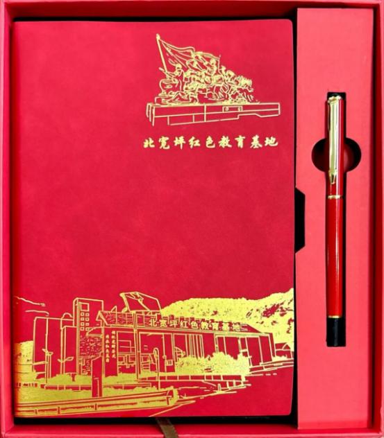 一本厚册,传承红色文脉。以北宽坪红色教育基地、中原突围广场为核心设计元素,复古深红与赭石色调奠定庄重基调,烫金工艺精雕建筑轮廓,刚劲书法体印刻基地名称,每一处细节都彰显历史的厚重与神圣。兼具书写实用性与红色教育意义,既是日常办公、学习的得力工具,更是可随身携带的红色精神读本,为政企单位节日馈赠、党建活动伴手礼首选,让红色基因在笔墨流转中代代相传。