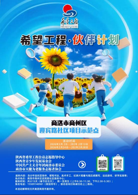一份陪伴,一份希望;一次参与,一生温暖。“希望工程·伙伴计划”,以爱为帆,以伴为桨,守护每一位少年的成长梦想。诚邀每一位有需要的孩子报名参与,也期待社会各界爱心人士关注支持,一起为商洛青少年健康成长贡献力量!