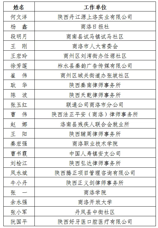 附件:商洛市行政执法社会监督员拟聘任人员名单