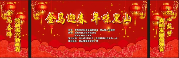 新春佳节将至,为营造喜庆祥和的节日氛围,丰富全镇群众新春文化生活,黑山镇党委、政府特举办“金马迎春·年味黑山”春节文艺演出,诚邀全镇父老乡亲前来观看,共迎新春、共赏好戏。现将有关事宜通知如下: