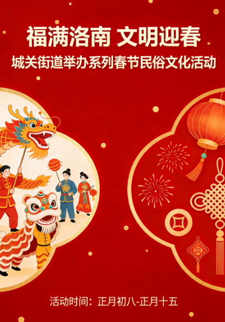 活动内容:舞狮舞龙、秧歌表演、彩旗表演