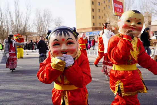 活动内容:舞狮舞龙、彩旗、大头娃娃、秧歌表演