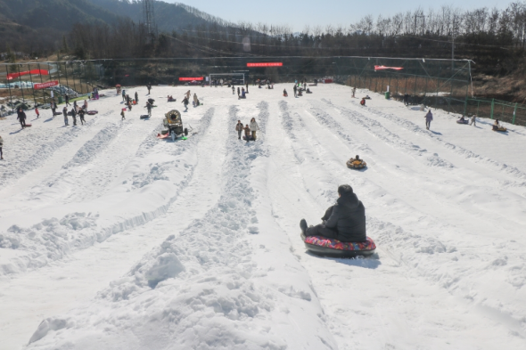 2月9日,笔者在洛南县音乐小镇秋沙鸭戏雪乐园的滑雪场看到,相比去年,除了动感滑雪项目之外,还新增了萌宠互动、非遗联动等体验项目,深受游客喜爱。身着各色滑雪圈的游客们或俯冲而下、体验速度与激情,或在平缓区域缓步滑行、感受雪上乐趣,现场工作人员穿梭其间,除了不断提醒游客注意安全外,还不停地更换滑座。
