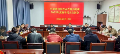 2026年2月12日下午,商洛市商州区农业农村局党组召开2025年度民主生活会。会议由局党组书记、局长彭志华主持,区督导组到会指导,局党组班子成员参会,相关单位及股室负责人列席。