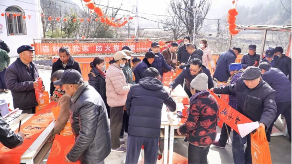 村民徐大爷搬着凳子早早占位,听得入神,手中还攥着一副墨迹未干的春联。这墨香祝福来自“翰墨送福”专区,商洛市政协第四党支部的书法志愿者现场挥毫泼墨,一副副笔力遒劲的春联、一张张充满喜庆的“福”字跃然纸上。书法志愿者们按需为村民义写,村民们围在旁边等候,不时赞叹。领到春联的乡亲们小心翼翼捧着,互相欣赏分享,手写的温度比印刷的春联更具人情味与文化韵味。