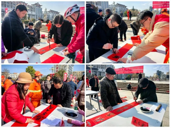 县文化馆书法家现场挥毫,春联免费送,把这份手写的温度带回家,贴在大门上,年就真的来了。