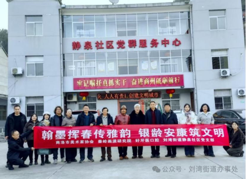 为营造喜庆祥和的新春氛围,普及健康生活理念。2月12日,商洛市商州区刘湾街道静泉社区联合商洛市美术家协会、秦岭画派研究院、好牙医口腔、商洛弘远社会工作发展中心共同举办“翰墨挥春传雅韵,银龄安康筑文明”主题活动,社区居民、志愿者共计150余人欢聚一堂,共迎新春、共话健康、共倡文明。