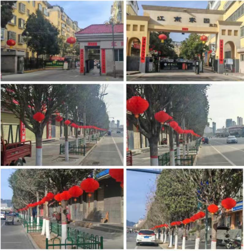 丹江春晓、丹江水岸、江南小区东区、江南小区西区……物业师傅架起长梯,将圆滚滚的大红灯笼稳稳挂上门楣。灯笼成对,春联成双,朱红洒金的对联纸上,墨字透着庄重的喜气。一幅幅寓意吉祥的对联和火红的灯笼,将新年的美好愿景小区铺满了每一处角落。