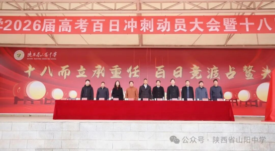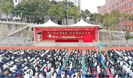 十八岁,是青春的坐标,更是远征的起点。一百天,是冲刺的号角,更是圆梦的征程。相信陕西省山阳中学2026届全体高三学子,必将以此次大会为契机,怀揣感恩之心,肩负时代重任,以更加饱满的热情、更加昂扬的斗志、更加扎实的行动,奋战百日,竞渡高考,在六月的考场上独占鳌头,书写属于自己的人生华章,也为山阳中学的辉煌历史增添浓墨重彩的一笔!