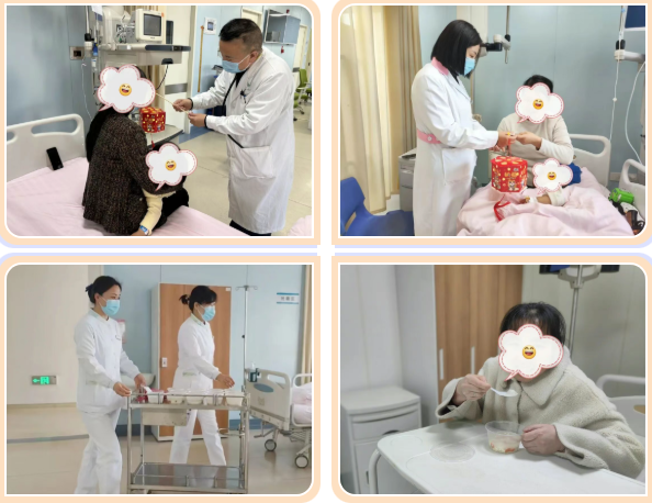 “小朋友,今天是元宵节,祝你节日快乐,吃了这碗汤圆,身体越来越好!”一句句温暖的祝福,一张张亲切的笑脸,让原本安静的病房顿时洋溢着节日的温馨。对于因病情暂时不能进食汤圆的特殊患儿,医护人员也没有忽略他们——他们精心准备了小灯笼、剪纸、卡通贴纸等小礼物,用陪伴和安慰传递关怀,缓解孩子的紧张情绪,也减轻了家长连日陪护的焦虑与压力。