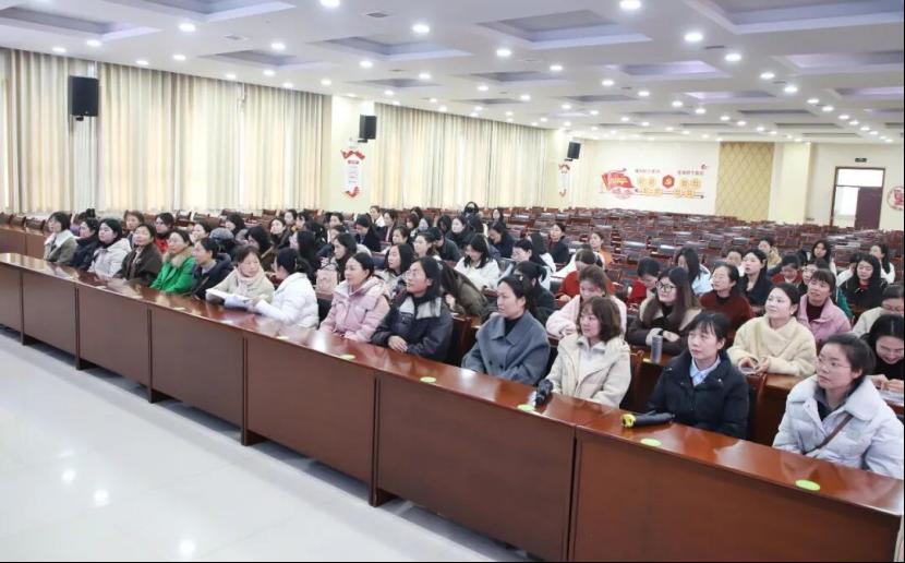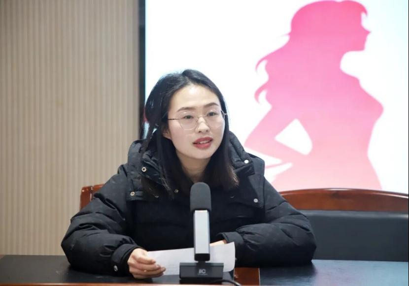 女教师代表高珍上台发言,她以朴实真挚的语言,分享了扎根讲台的从教心得,生动展现了我校女教职工爱岗敬业、立德树人、向善向美的巾帼风采。