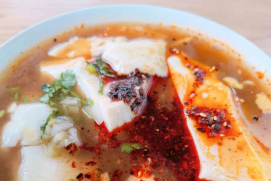 热豆腐更见功力。商州的浆水豆腐是用山泉水做成的,质地纯正坚挺,白细精嫩。切成方块盛入碟中,覆以切碎的葱、姜、蒜、辣椒、香菜,再浇上半勺煮沸的香油——可谓是“观如云、香如醇、嫩如酥、软如绒”。清晨来一口,豆香满溢。
