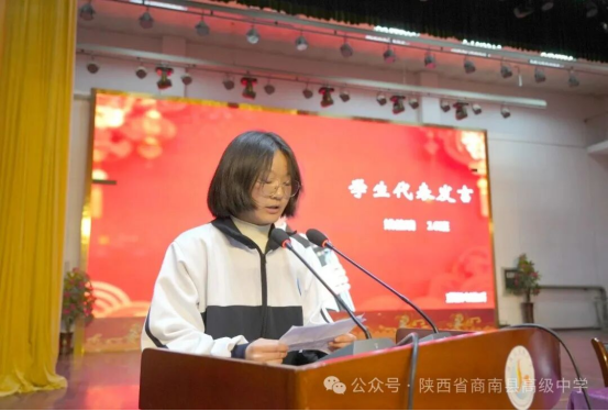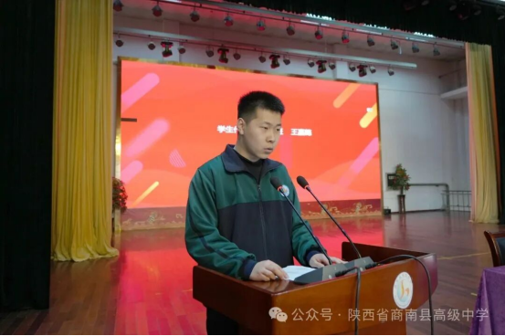 高三学生代表王嘉懿、周晋依次发言,分享学习心得与备考感悟,号召同学们以先进为榜样,以全力以赴、不负韶华的决心,传递出“百日竞渡、誓创辉煌”的昂扬斗志。