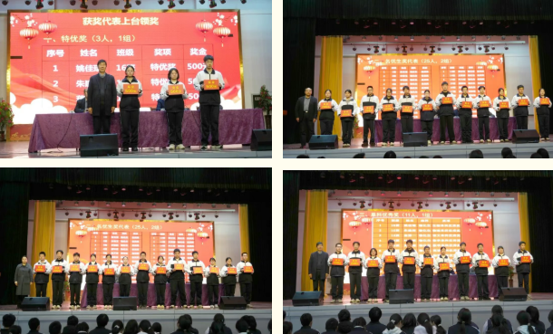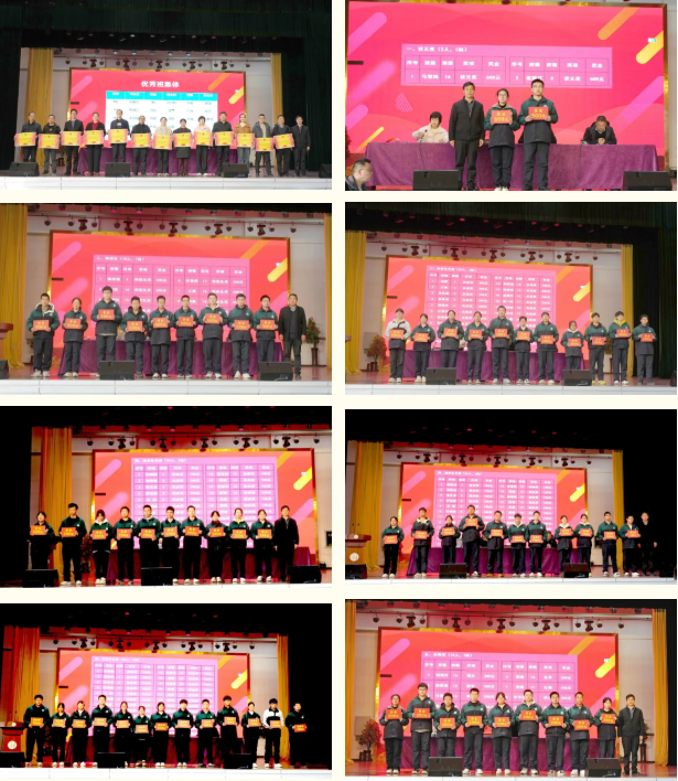 大会上,各年级负责人依次宣读表彰决定,对“优秀班集体奖”“状元奖”“特优生奖”“名优生奖”“进步奖”“单科奖”等多个奖项予以通报表彰。