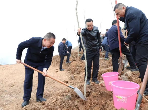 据了解,本次植树活动共栽植杜仲、秦岭红豆杉、碧根果、连翘等苗木5500余株。
