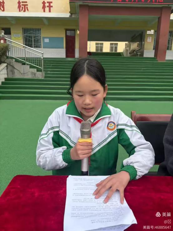 少年强则国强,少年正则校风正。学生代表六年级(2)班刘沛萱同学上台发言,她以真挚的语言分享学习感悟和学习方法,号召全体同学严于律己、勤奋好学,争做文明守纪、全面发展的新时代好少年。