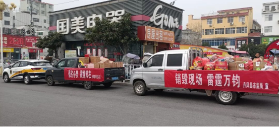 此次活动共发放宣传资料10000余份,为60余名群众解答维权疑问。现场集中销毁假冒白酒435瓶、过期食品3499件、其他违规商品377件,共计5511件,涉案价值17.02万元,有力震慑制假售假行为,维护市场秩序和群众利益。